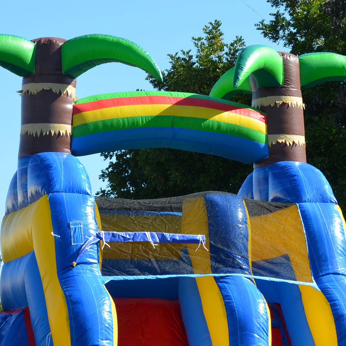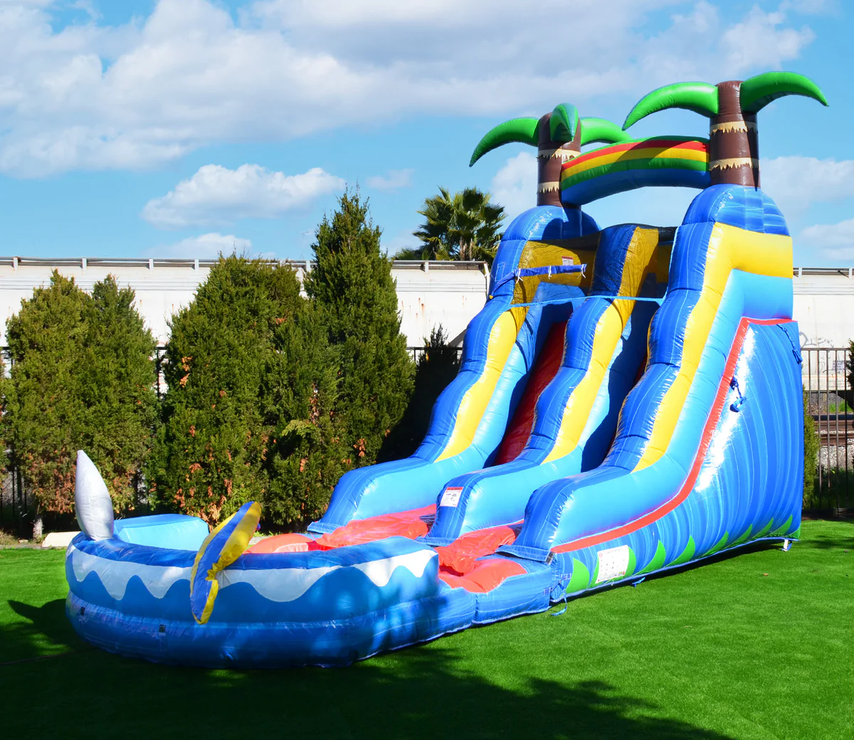 15 FT Tall Ocean Shark Dry/Wet Slide. This backyard inflatable is perfect for both kids and adults and is sure to be a hit at any gathering. With a shark theme, this unit is sure to impress big kids and provide hours of fun on a hot day. So, make your next backyard party an event to remember.